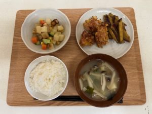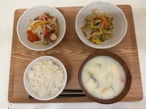 今日は芋煮会を実施しました。 前日にみんなで買い出しに行った食材を①ちぎるグループと②包丁で切るグループに分かれて調理に参加しました。 ★ちぎるグループの様子★ 豆腐・こんにゃく・しめじをそれぞれ一口大に手でちぎりました。間違えて口に入れて…