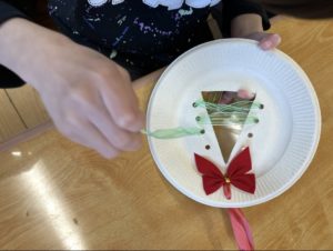 説明をしっかり聞いて、リボン通しやシール貼りを楽しみました。