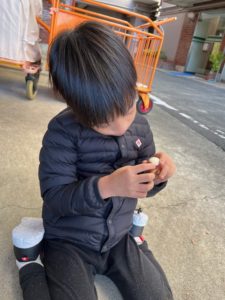 そのままお散歩に出発。お散歩の途中で寄った神社で、