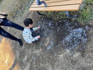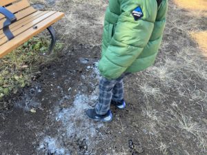 霜柱に魅了されて、夢中になってあそんでいました!