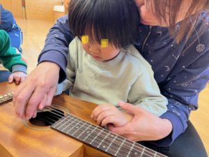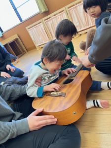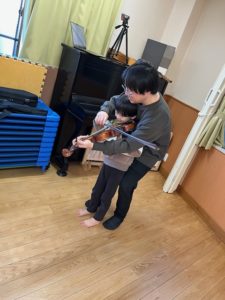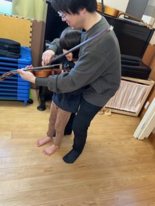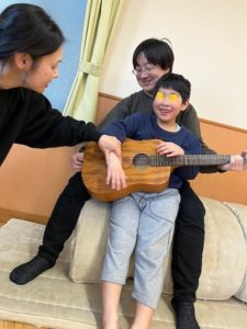 休憩タイムには、楽器に触れる経験もさせていただきました。以前は音が苦手だった子も、自分から「やる!」と楽器に近づいて、笑顔で音を奏でる姿が印象的でした。