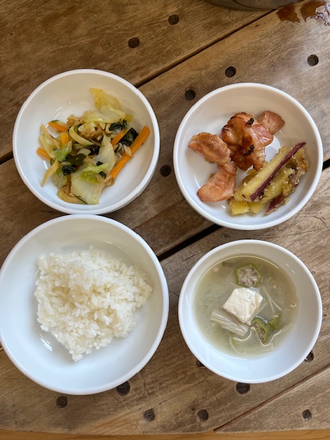 ❖ごはん ❖鶏肉の照り焼き ❖さつまいものきんぴら ❖切干大根サラダ ❖おくらのみそ汁