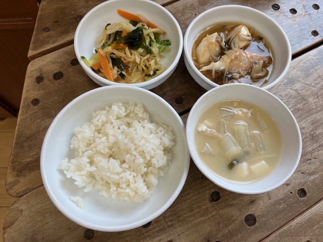 ❖ごはん ❖魚のきのこあんかけ ❖切干大根サラダ ❖トロトロ納豆汁