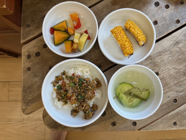 ❖和風ガパオライス ❖とうもろこしのオーブン焼き ❖焼き野菜のマリネ ❖ズッキーニのスープ