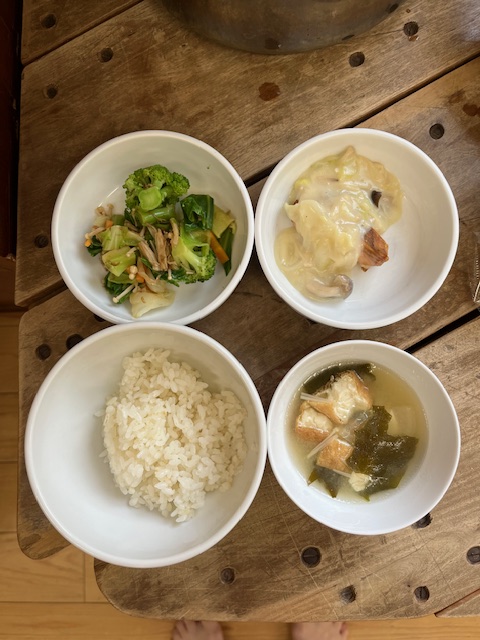 ❖ごはん ❖厚あげのみそ炒め ❖キャベツの中華和え ❖大根のスープ