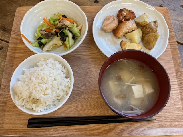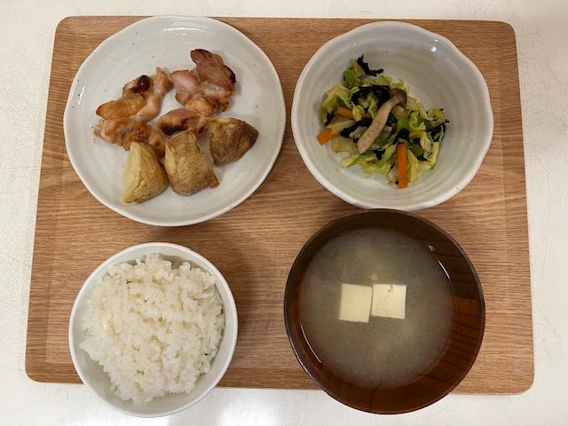 ❖ごはん ❖鶏肉の照り焼き ❖じゃがいものオーブン焼き ❖キャベツの磯和え ❖きのこのみそ汁
