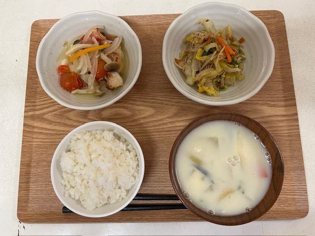 ❖ごはん ❖魚のアクアパッツァ風 ❖白菜のおかか和え ❖呉汁