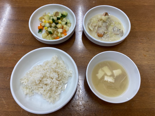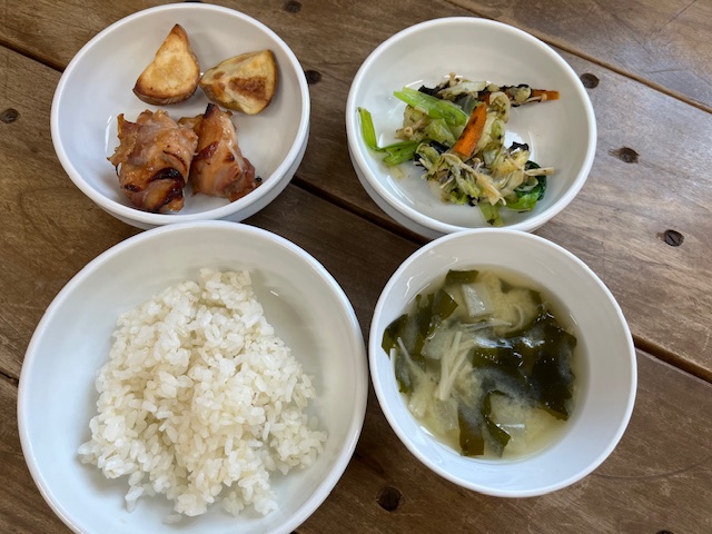 ❖ごはん ❖鶏肉の照り焼き ❖じゃがいものオーブン焼き ❖キャベツの磯和え ❖大根のみそ汁