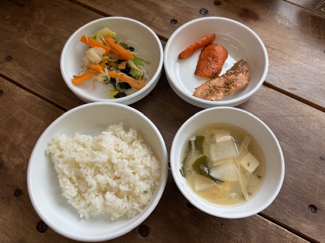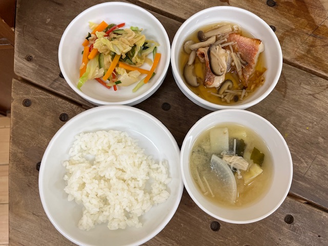 ❖ごはん ❖魚のごま焼き ❖にんじんのオーブン焼き ❖キャベツの磯和え ❖豆腐のみそ汁